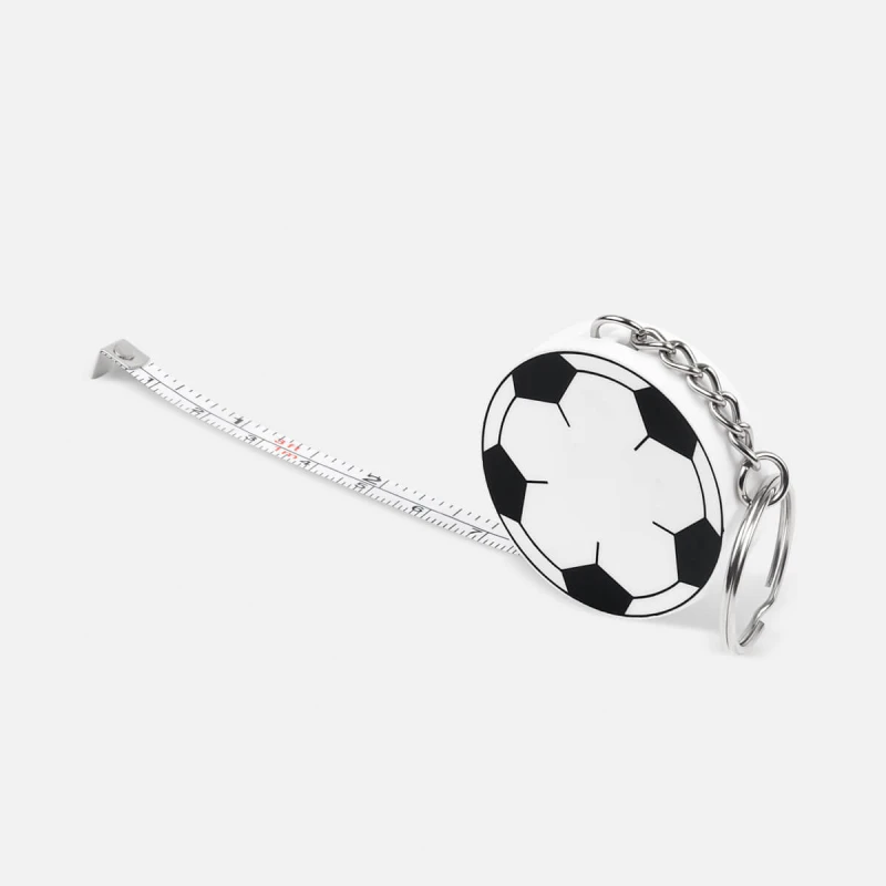 Llavero con diseño de balón de fútbol con flexómetro metálico de 1 m. 4 cm.